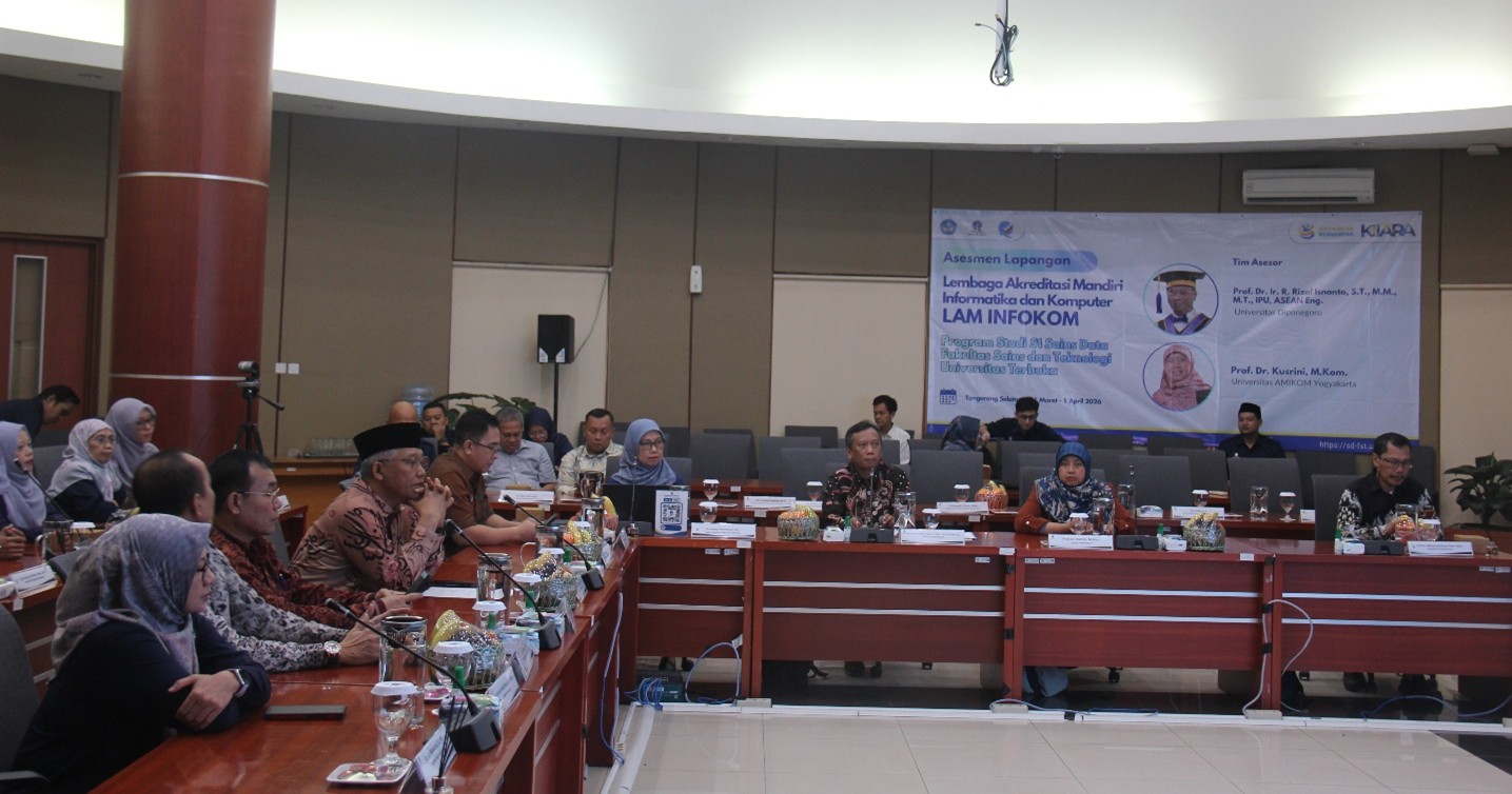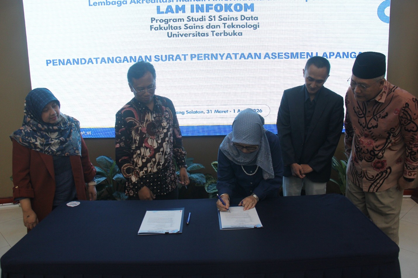 Tangerang Selatan – Program Studi (Prodi) Data Sains Universitas Terbuka (UT) menjalani proses Asesmen Lapangan (AL) sebagai bagian dari komitmen penjaminan kualitas pendidikan tinggi. Prodi Sains Data termasuk dalam cakupan LAMINFOKOM, Dalam kegiatan yang berlangsung pada 31 Maret 2026 tersebut, tim asesor LAMINFOKOM memberikan berbagai catatan strategis mulai dari apresiasi terhadap bahan ajar hingga penguatan sarana pendukung berbasis teknologi cloud. Tim Asesor yang bertugas adalah Prof. Dr. Ir. R. Rizal Isnanto, S.T, M.M., M.T., IPU, ASEAN Eng. dan Prof. Dr. Kusrini, M. Kom. Kegiatan ini berangsung di Auditorium Fakultas Sains dan Teknologi) dan dibuka oleh.  Rektor Universitas Terbuka.